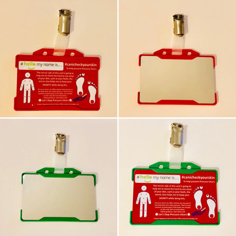 We thank Chris Pointon for his permission to use the #hellomynameis logo on our mirror badges. The Mirror Badge and the Shatterproof Mirror Cards have always been designed for care givers to check patients skin to prevent pressure ulcers, but we really feel we all should be saying “hello my name is” before any care is carried out, especially such an Intimate procedure as a skin inspection.